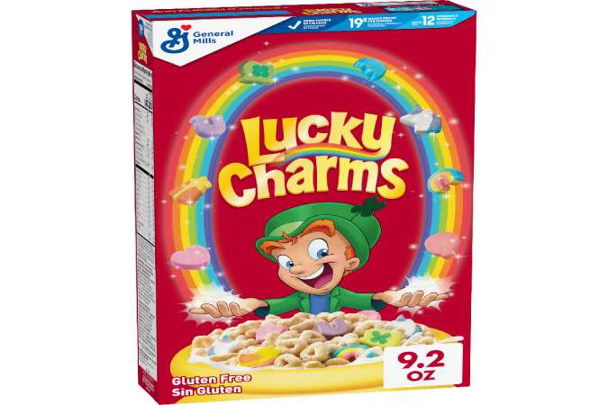 CONTAINS: One 18.6 oz Family Size box of Lucky Charms Gluten Free Breakfast Cereal with Marshmallows